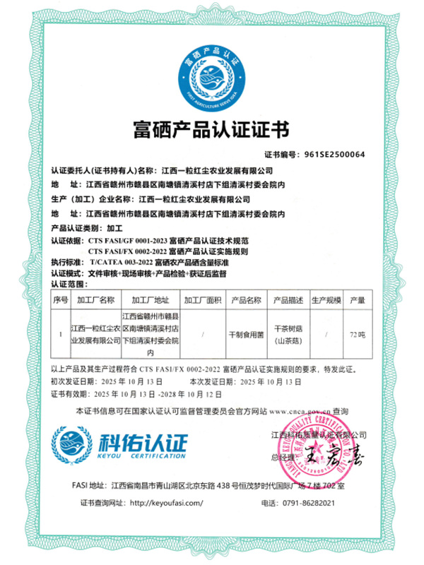 江西一粒紅塵農業發展有限公司是一家總部位于江西省贛縣的現代農業多元型企業,專注于食用菌的研發、種植、深加工貿易研教培、農文旅等全產業鏈發展。公司秉承“健康綠色、共享、共贏”的核心價值觀,致力于引領鄉村振興之路,旨在成為......